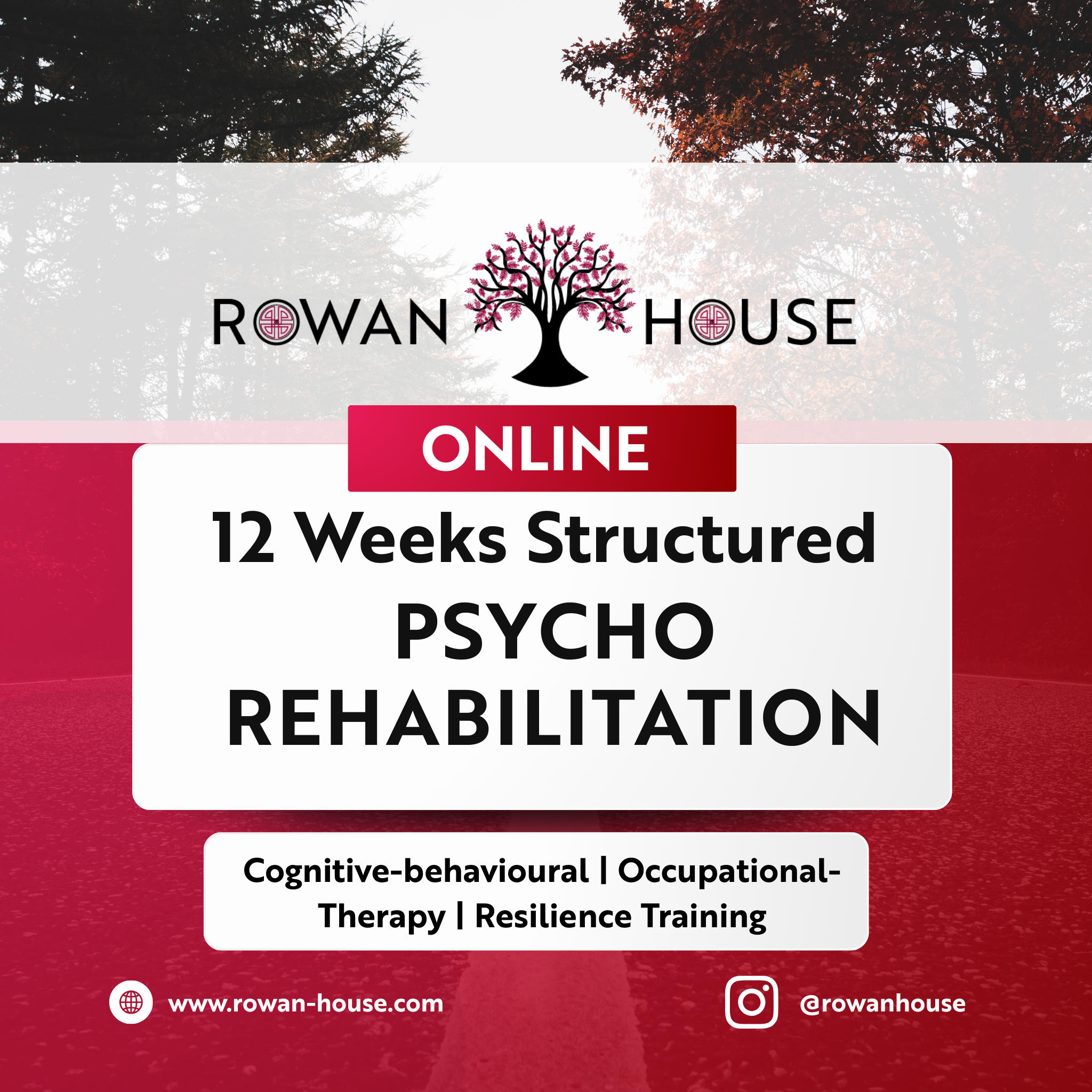 ROWAN-HOUSE programs are delivered online, making them accessible to individuals seeking structured psychological rehabilitation and practical skills for recovery, resilience, and long term wellbeing.